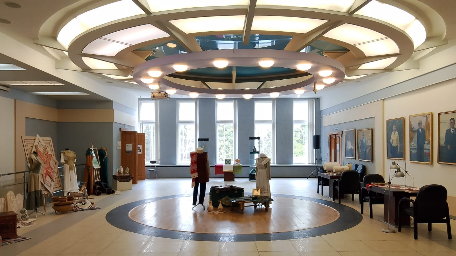 Экспозицию от имени ректора КазГИК представили руководитель проектного офиса вуза Гузель Мингазова, декан факультета традиций и инноваций народной художественной культуры Расых Салахов, преподаватель кафедры изобразительного искусства и дизайна Глеб Быков.