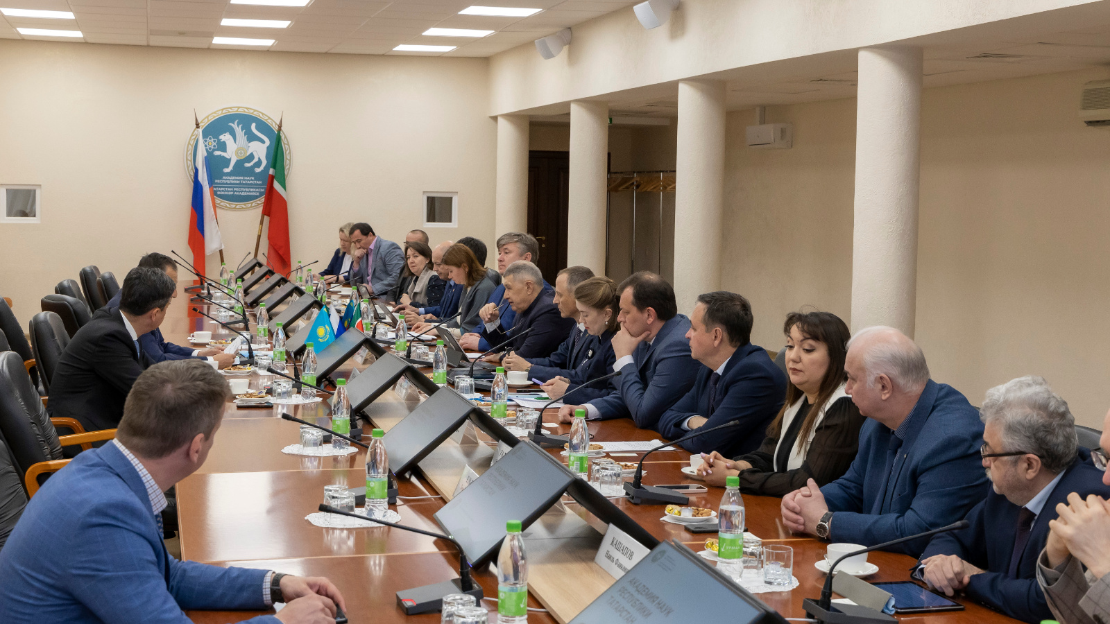 Рабочую встречу провели президент АН РТ Рифкат Минниханов и председатель правления — ректор университета им. аль-Фараби Жансейт Туймебаев. В ней также приняли участие генеральный консул Казахстана в Казани Ерлан Исхаков и представители АН РТ.